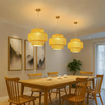 Add a touch of natural elegance to your space with this modern bamboo rattan woven pendant lamp. Handcrafted from eco-friendly materials, it features a soft, layered design that creates a warm and inviting glow. The intricate weave pattern casts beautiful ambient shadows, making it a perfect centerpiece for dining rooms, living areas, or any space in need of cozy charm.