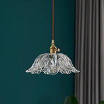 This Nordic Single-Head Glass Flower Pendant Lamp features a simple and stylish design. Made with clear glass and a sleek look, it adds a touch of elegance to any room. Perfect for modern and minimalist spaces, this lamp provides a soft, warm light that creates a cozy atmosphere. Its unique flower shape makes it a charming addition to your home or restaurant decor.